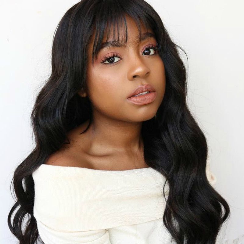 Long Wavy Curly Fringe Human Hair Wig Body Wave Brazilian Etsy
